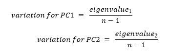 The other characteristic of our principal component is variation for the principal component which calculated for each principal component by dividing the eigenvalue by the number of samples minus one.