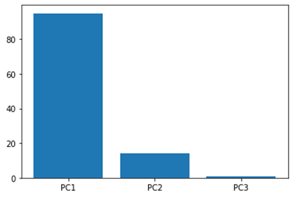 Now let us say we have a dataset with three variables, and we find the principal component for each of them and lastly get the below screen plot.