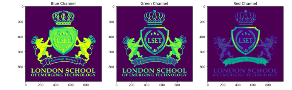 Now we can split the image into three separate layers each representing a channel and display them
